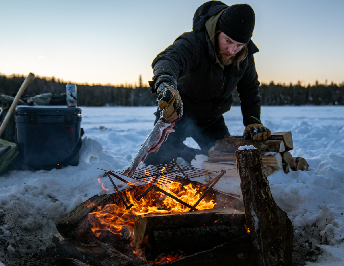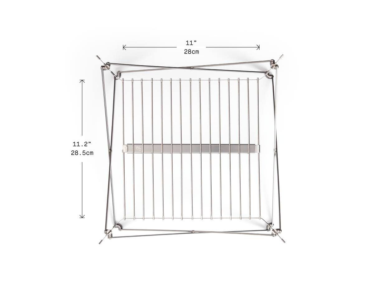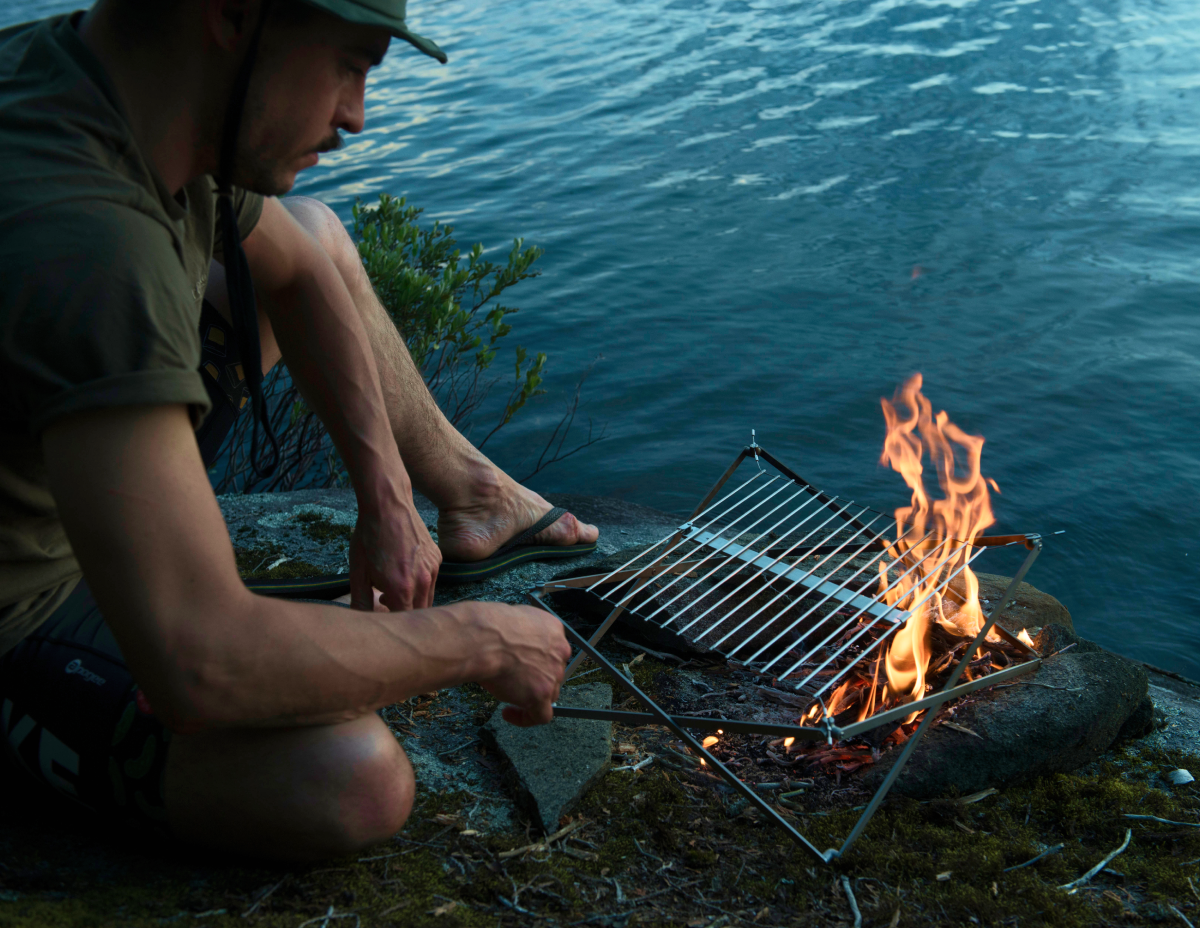 With a foldable frame and rollable grill surface, Grill packs down as small as possible for ultimate portability. It fits easily in a backpack, bug-out bag, or the saddlebags on a bike or four wheeler.