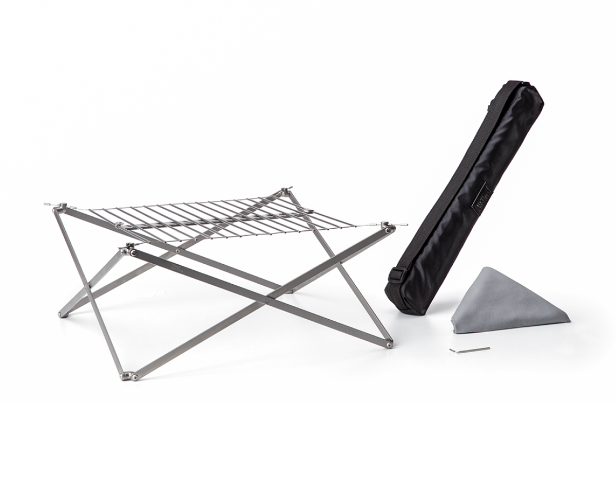 Three adjustable heights lets you adapt to your environment and fuel type. Whether you’re cooking over low coals or elevated above the flames, this kit can handle whatever you need.