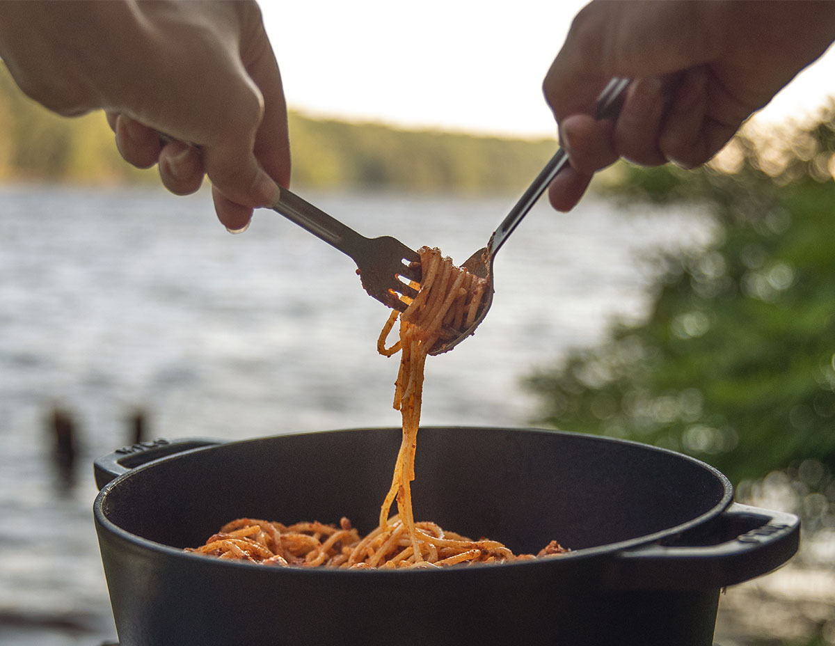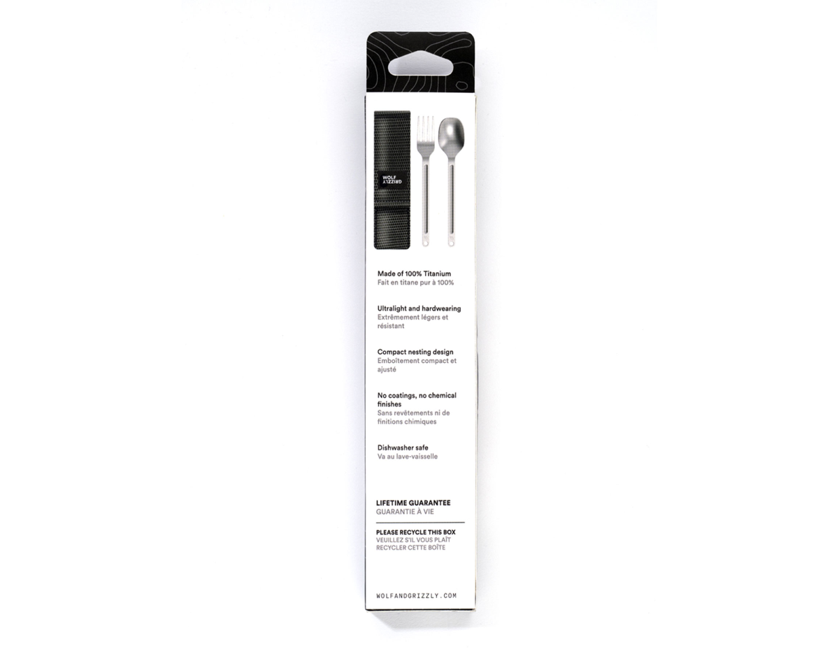 We intentionally designed the cutlery set without the inclusion of a knife. Camping is all about maximizing convenience, and with the Wolf and Grizzly cutlery set, you’ll be able to enjoy your outdoor meals without worrying about heavy cutlery taking up space in your bag or pack.