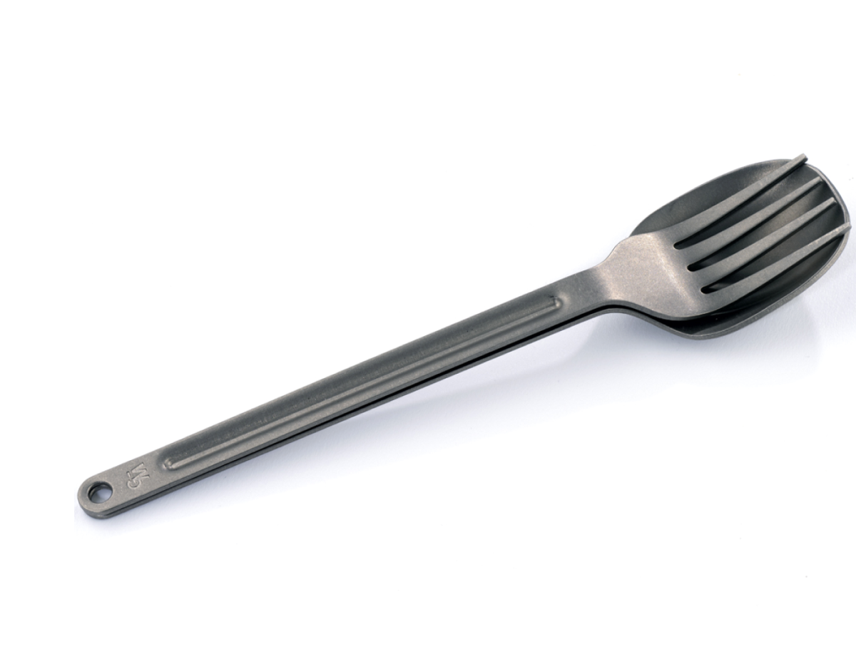 Made from a single piece of titanium, this camp cutlery set is corrosion-resistant, lightweight and strong.